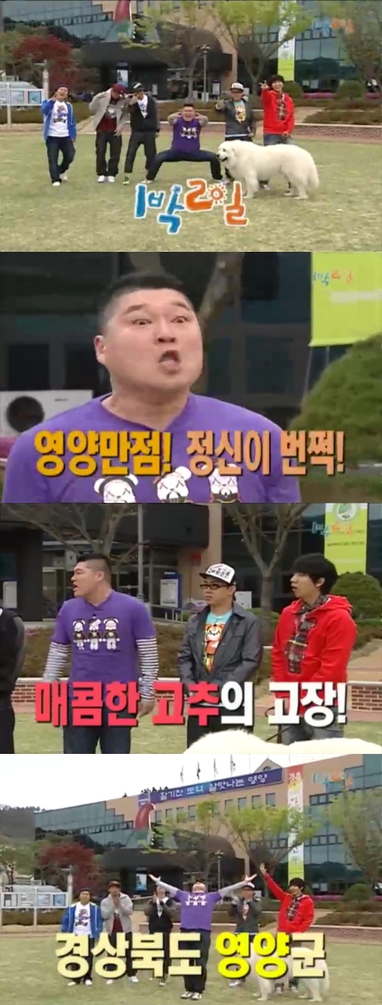 이와 관련해 지난 2009년 방송된 KBS 2TV ‘1박 2일’ 시즌1이 재조명되고 있다. 2009년 5월 방송된 집으로 특집에서 영양군청 앞에서 오프닝을 시작한 출연진은 ‘영양 만점’ ‘등의 문구로 영양군을 소개했다.