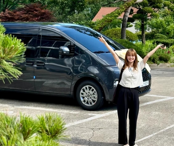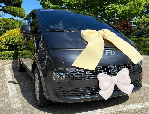 공개된 사진에서는 리본으로 장식된 신형 승합차 앞에서 남보라가 포즈를 취하고 있다.