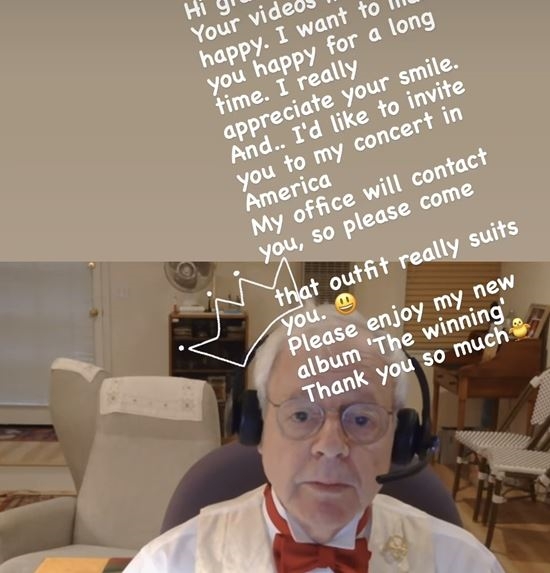 이 영상이 화제가 되자 아이유는 할아버지 팬의 영상을 캡처해 소셜 미디어에 올리며 감사의 메시지를 전했다. 그는 “당신의 영상이 나를 행복하게 해줬다. 오래오래 행복하게 해주고 싶다”라며 “미국에서 열리는 제 콘서트에 초대하고 싶다. 소속사에서 연락을 드릴 테니 꼭 와달라”라고 글을 남겼다.