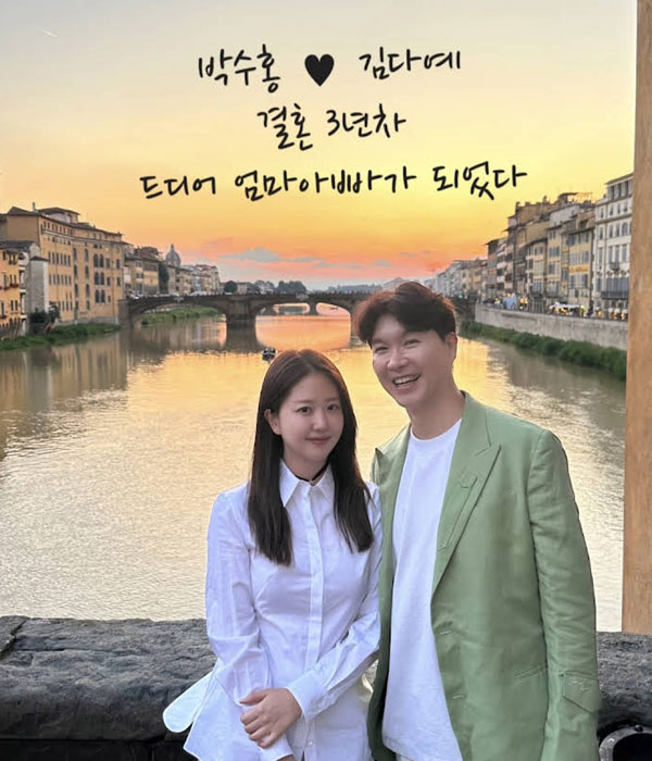 [케이팝라인 강영화 기자] 방송인 박수홍과 김다예 부부가 임신 소식을 전했다.